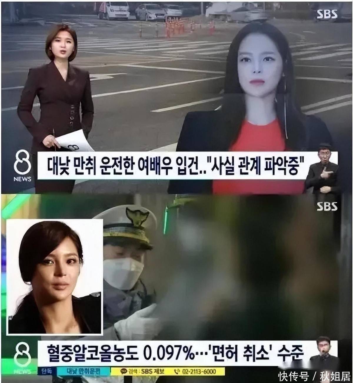 经警方检测,其血液酒精浓度高.097%,远超韩国法定醉驾标准(0.08%)。